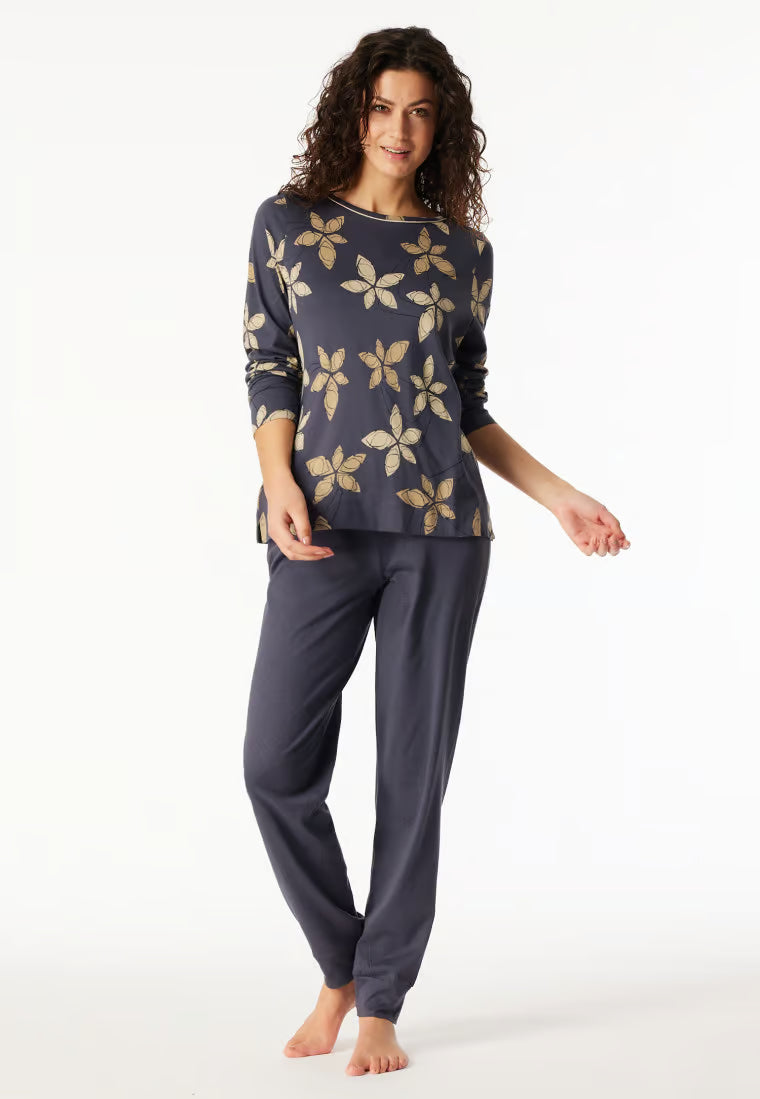 - Ženska pižama z dolgimi rokavi in dolgimi hlačami.